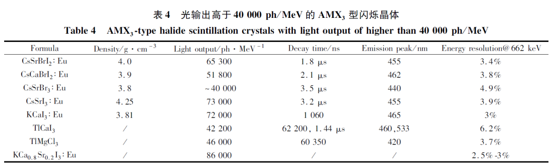 文中的大量表格是作者幾十年來(lái)對(duì)非氟鹵化物閃爍晶體研究狀況總結(jié)的高度濃縮,對(duì)閃爍晶體研究和從業(yè)人員具有重要的指導(dǎo)意義。(限于篇幅,這里僅示出幾個(gè)有代表性的表格)